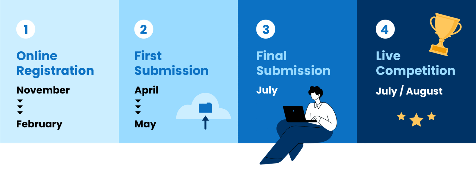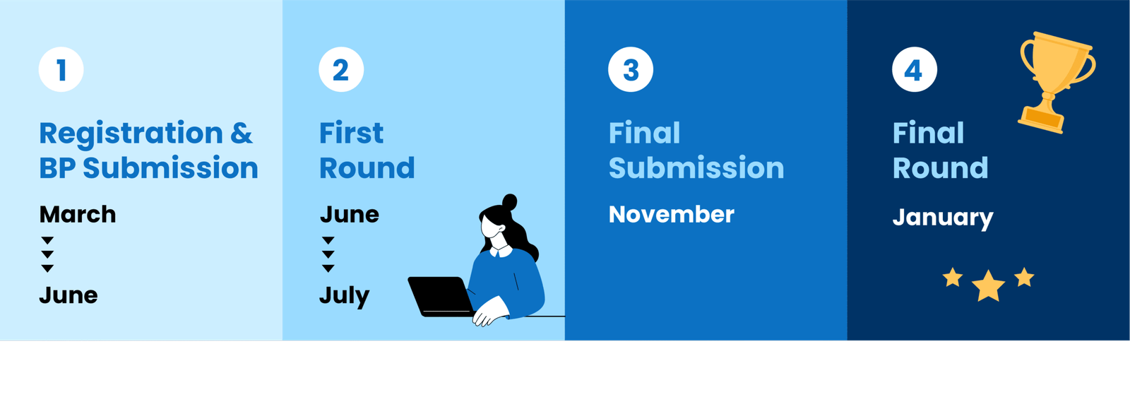 The Judging Panel consists of top executives from Fortune 500 and current professors and instructors from top universities. All team members will have a chance to consult directly with professors and domain experts.