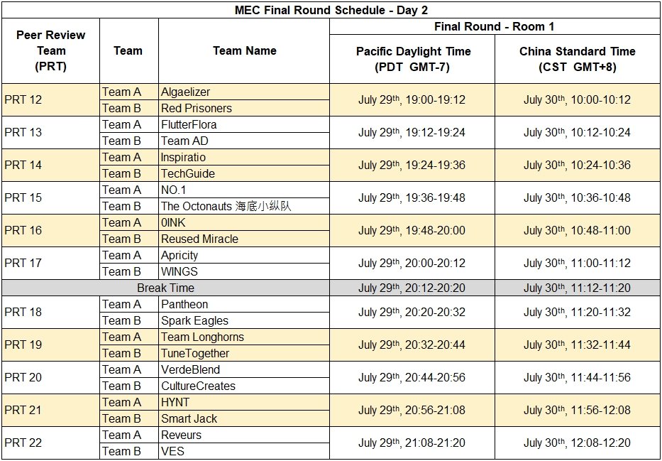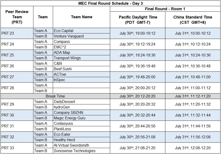 • After your Final Round submission, your team will receive a short video feedback from MEC judges.